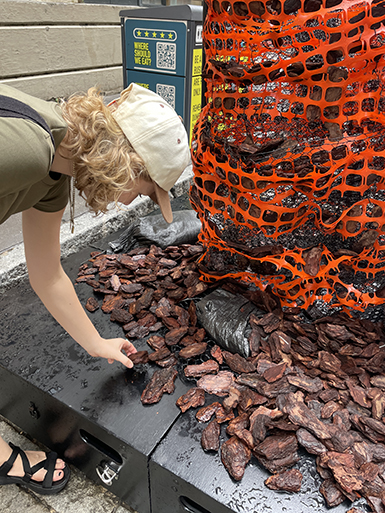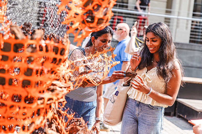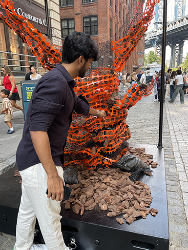 A collaborator shapes their hands to hold the finger food that makes them nostalgic about family members or friends in their home town or country.